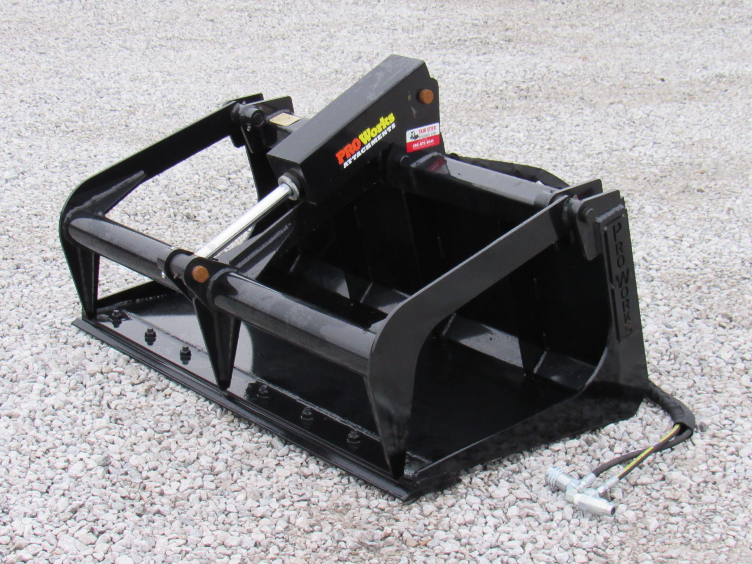 48″ Compact Tractor Single Cylinder Solid Bottom Bucket Grapple with Grease Fittings Fits Skid Steer Quick Attach