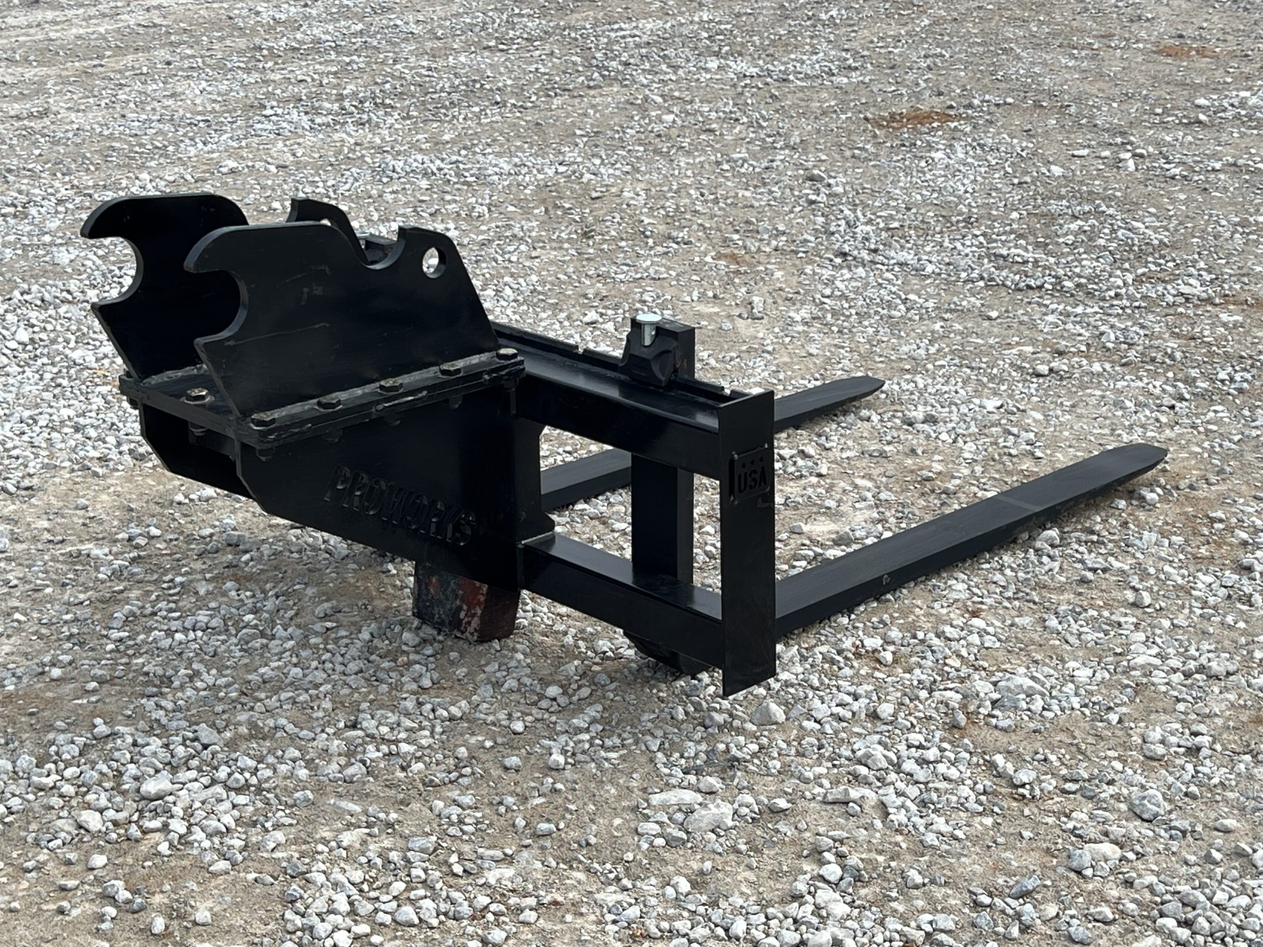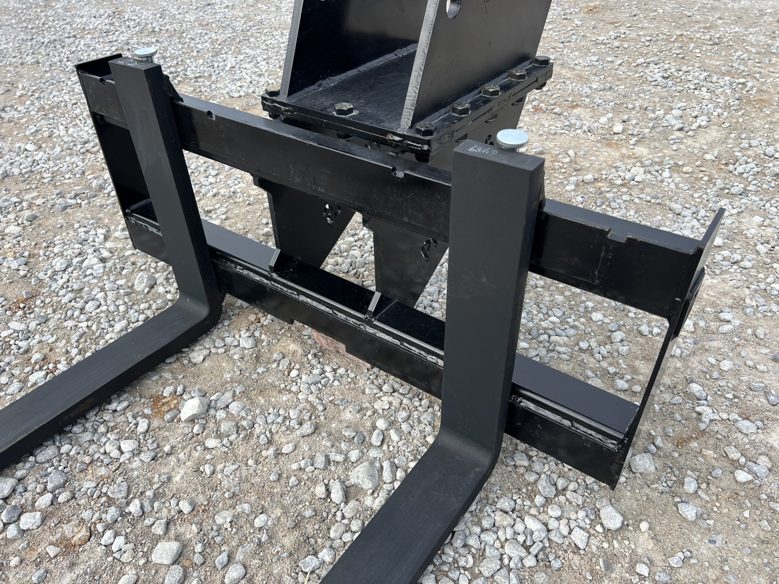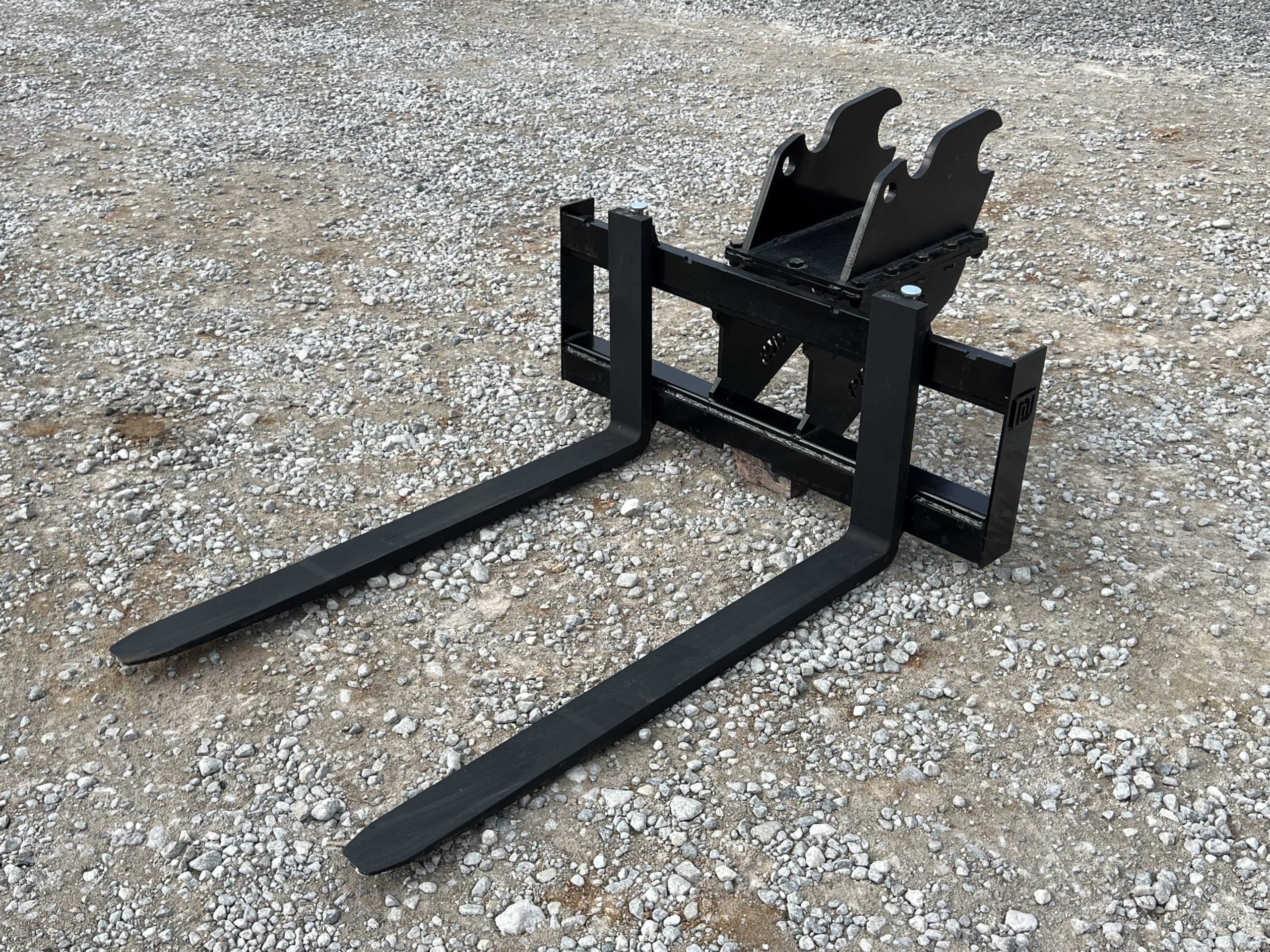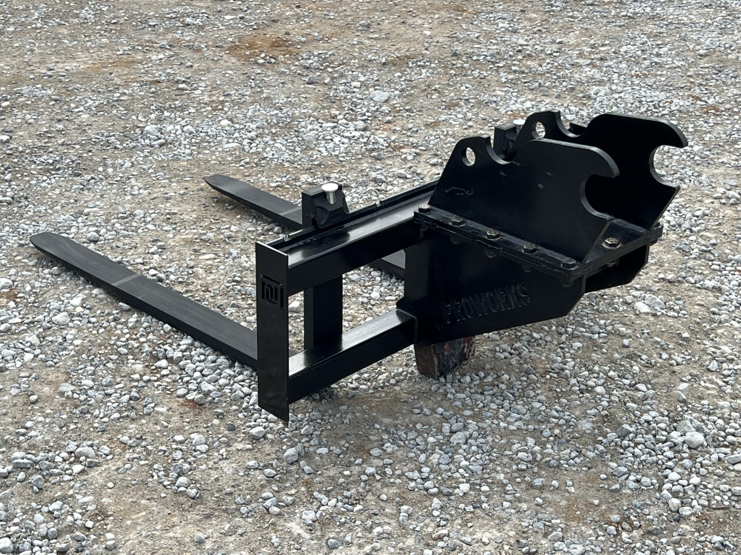 Easily handle pallets and materials with this heavy-duty pallet fork attachment, specifically designed to fit Kubota mini excavators with the Kubota quick attach mounting system. This attachment will fit Kubota U55, KX057 and KX191 mini excavators with the quick attach. Just remove your existing bucket and mount this attachment to move pallets with precision and ease.