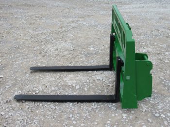 This is a set of brand new Pro Works brand 48″ long pallet forks for a John Deere loader with the 600 or 700 series loader mounting system. These are built in the United States of America. Turn your John Deere farm tractor into a forklift with this attachment!