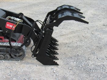 This is the 48″ heavy duty root rake grapple attachment designed for mini skid steer wheel and track loaders. This dual cylinder model features separate tongs to grab and hold uneven loads. This model features the mini universal mounting system designed for Toto Dingo, Vermeer, Ditch Witch, Thomas, Ramrod, Boxer and many more machines.