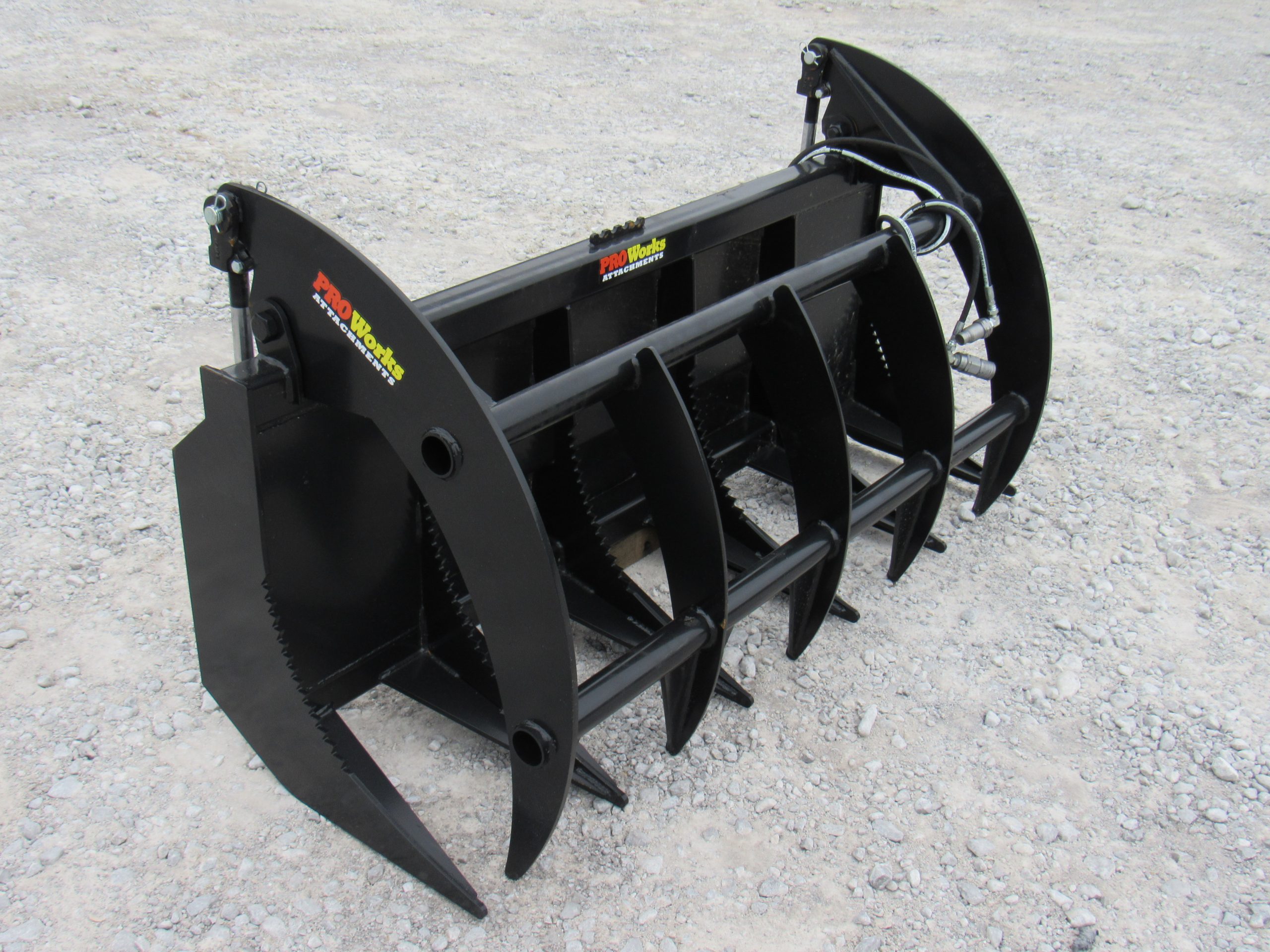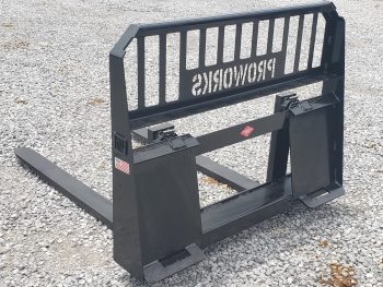 This listing is for a combination package featuring a 60″ PROWORKS root rake clam grapple and a 48″ long set of PROWORKS pallet forks. This is a brand new 60″ wide root rake grapple attachment for sale. This particular model is built to be heavy duty but at a lighter weight to run on skid steers and farm tractors with less than 50 HP. This grapple opens up 40″ wide and has very long tines for digging and ripping roots up out of the soil. This is a set of PROWORKS brand Heavy Duty pallet forks for a skid steer loader or tractor with a universal quick attach. These pallet forks are made in the USA. Owning a set of pallet forks for your skid steer is extremely helpful and convenient.