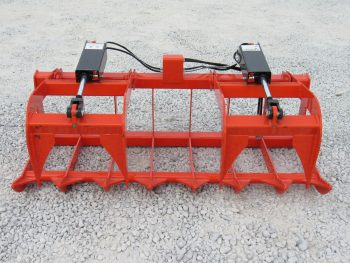 This is a brand new 66″ wide dual cylinder grapple designed to fit machines (skid steer’s and tractor loaders) with the skid steer quick attachment mounting system. The root grapple is great for moving brush, logs, and many other types of debris. With the wider tine spacing, it allows for dirt to fall through while allowing you to grab the bigger debris. It is a fantastic tool for clearing land, storm cleanup and all types of jobs. The dual grapple design allows for uneven and odd shaped debris or material.