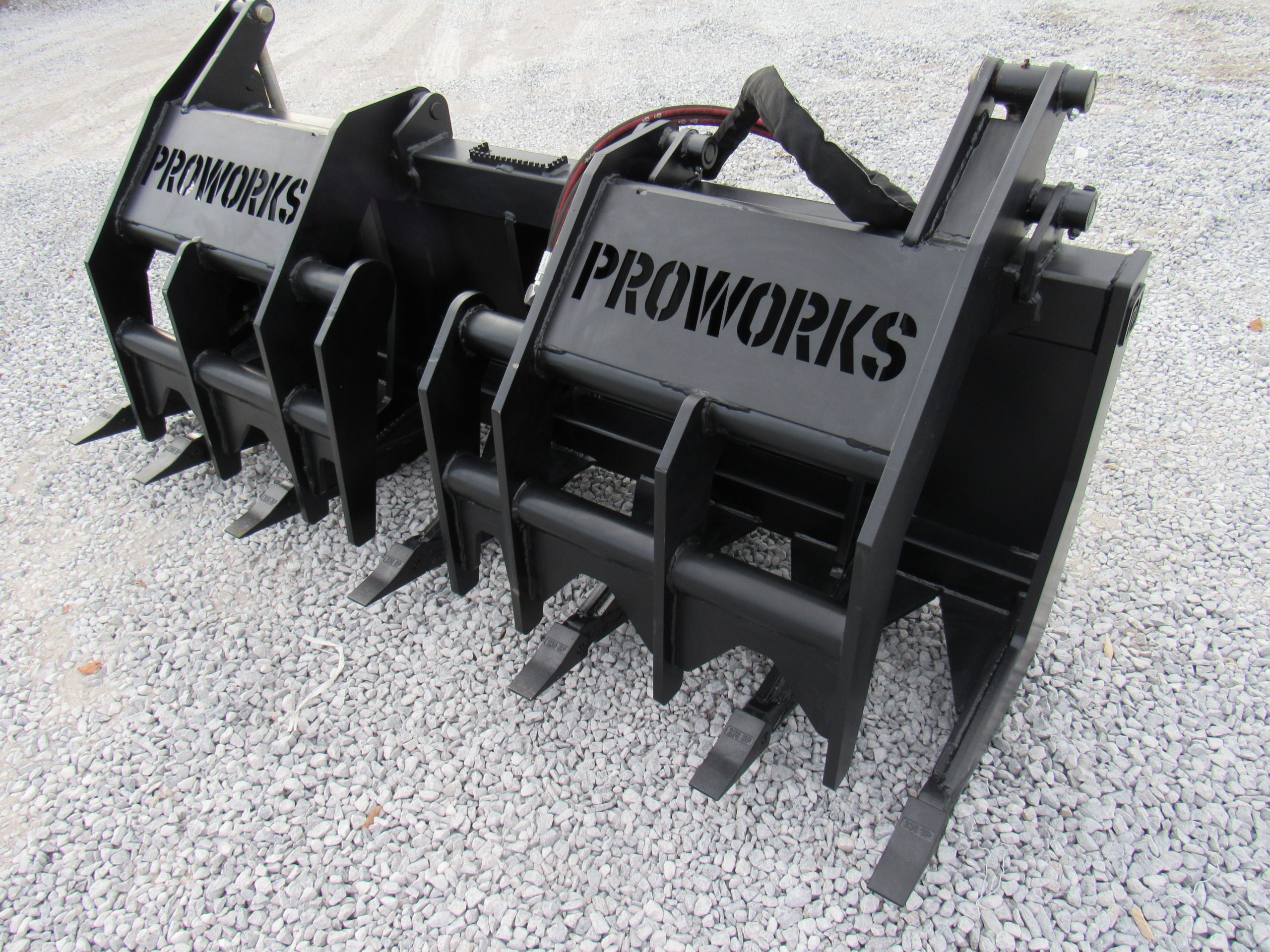 This is a brand new 80″ wide severe heavy duty root rake clam grapple attachment for sale. This particular model is built to be heavy duty for skid steers and farm tractors with more than 50 HP. This grapple has 3/4″ steel top tines and 1-1/2″ steel bottom tines. This grapple opens up 57″ wide and has very long tines equipped with teeth for digging and ripping roots up out of the soil. This model comes with greaseable hinge points and pins.
