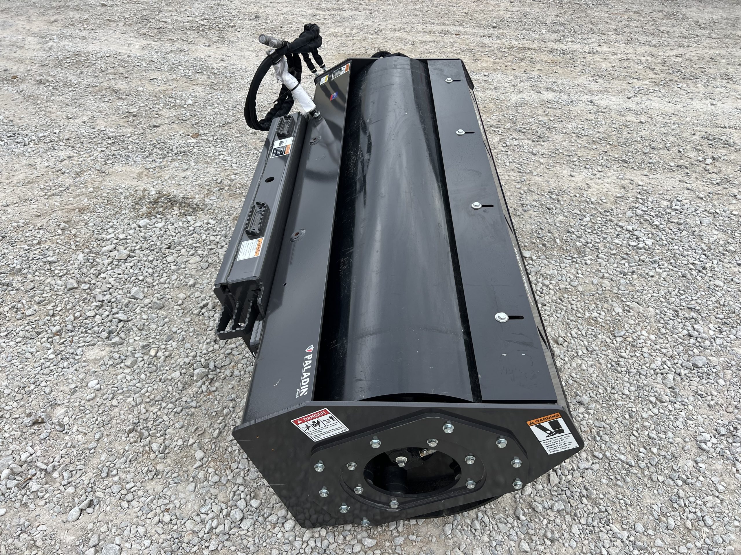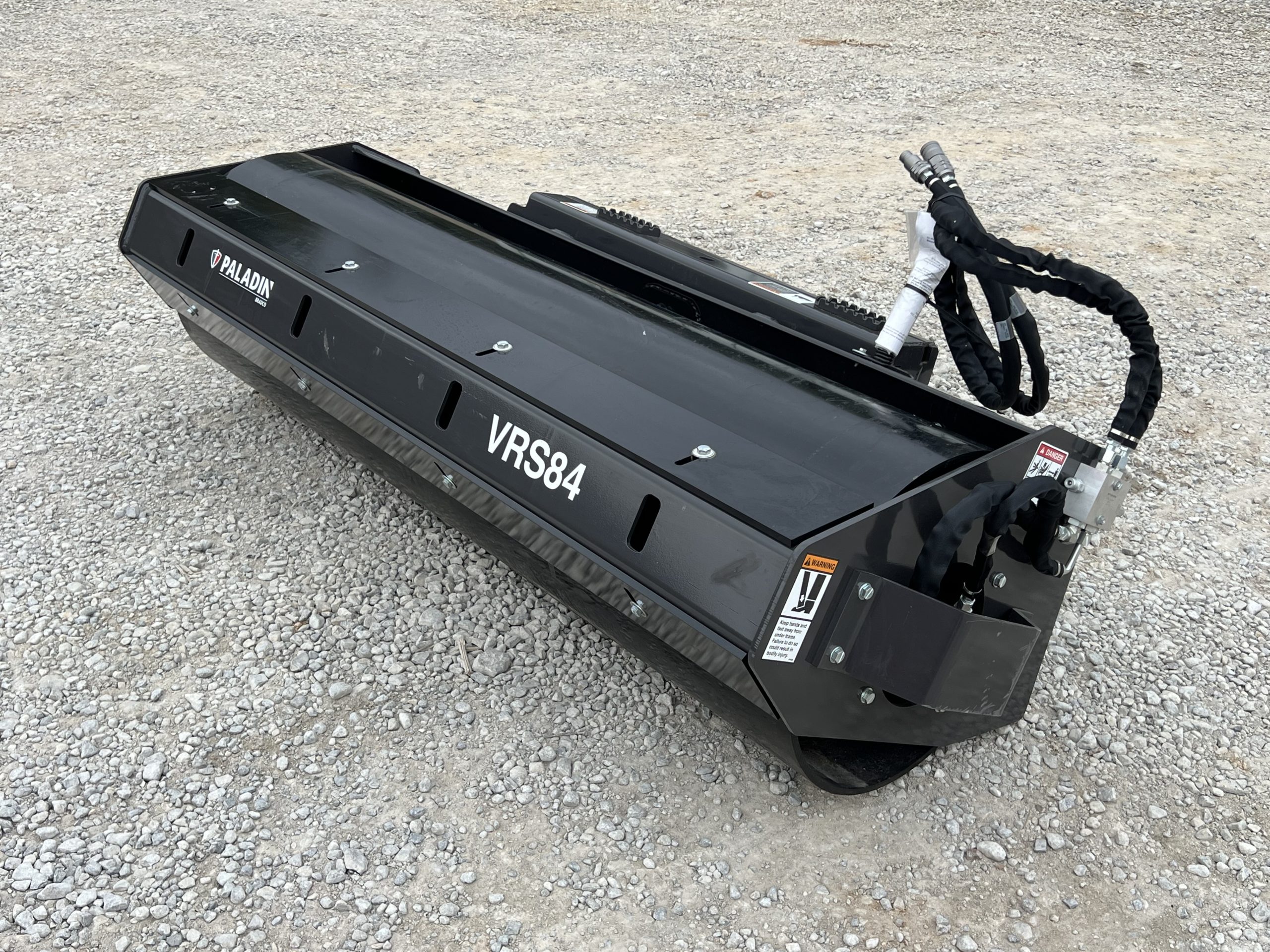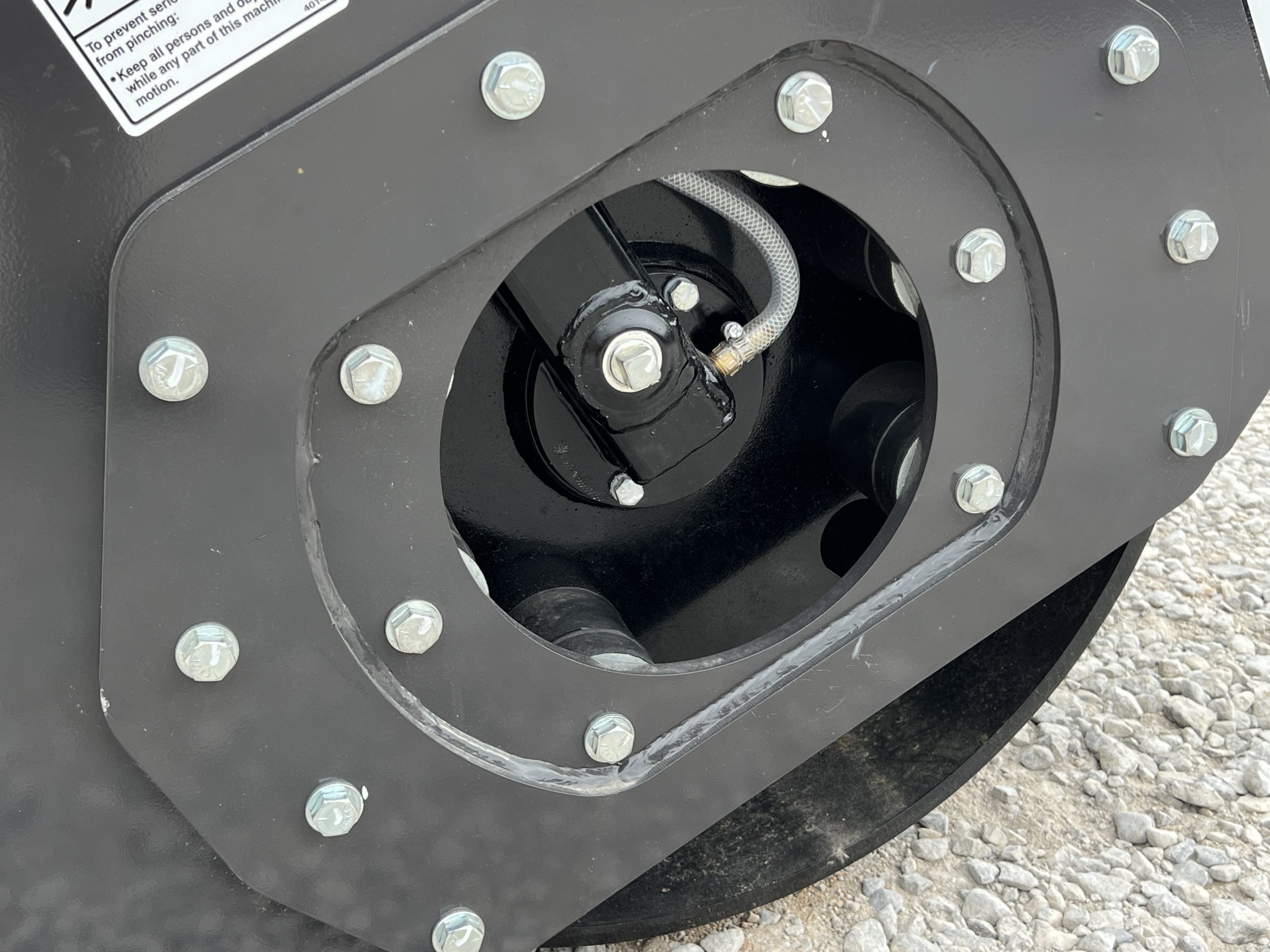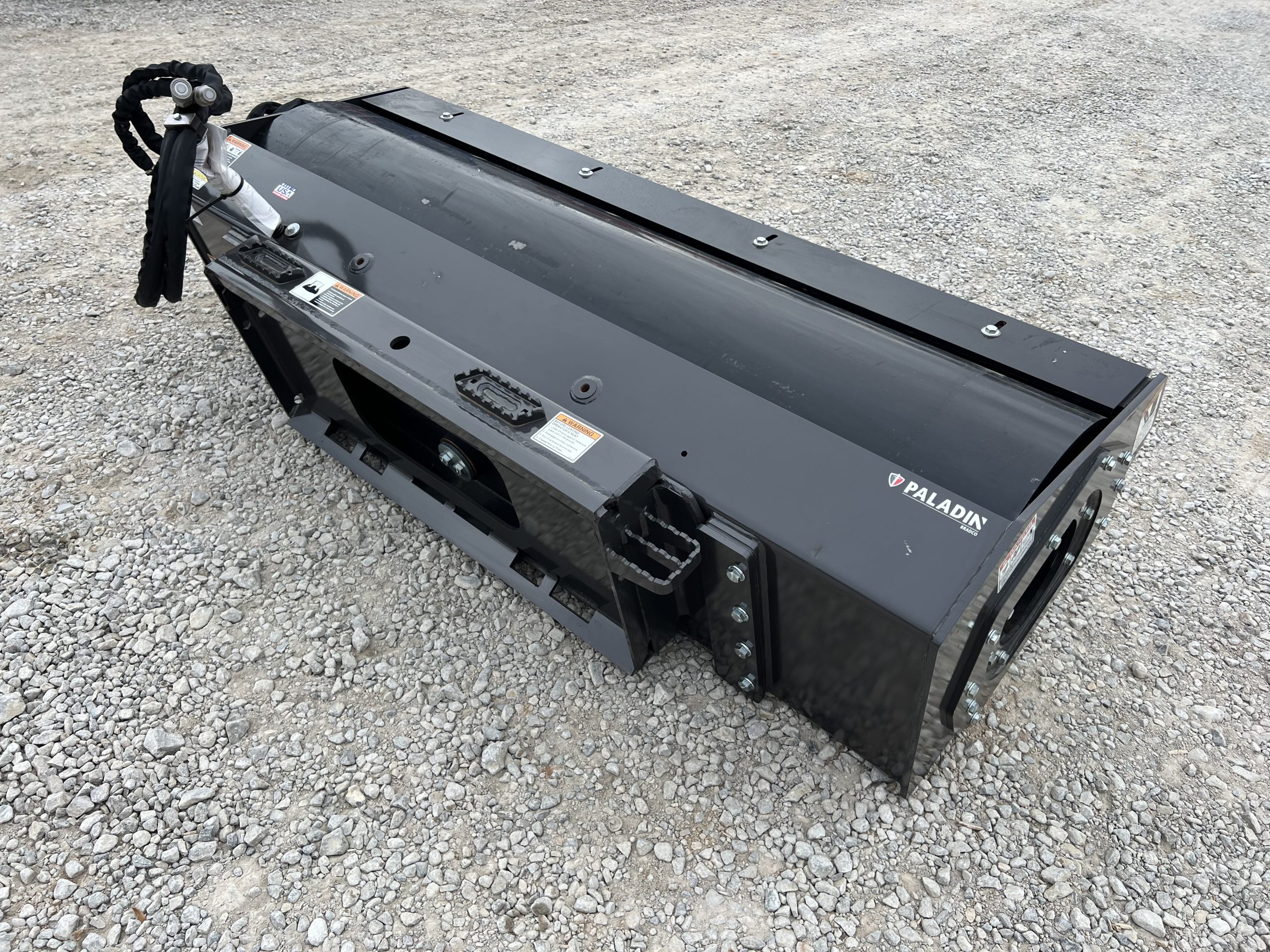 This is a brand new Paladin 84″ wide smooth drum vibratory roller attachment designed for skid steer loaders. Engineered for professional results, this Paladin roller delivers up to 9,370 lbs of dynamic force when operating at 20 GPM, making it ideal for demanding compaction jobs.