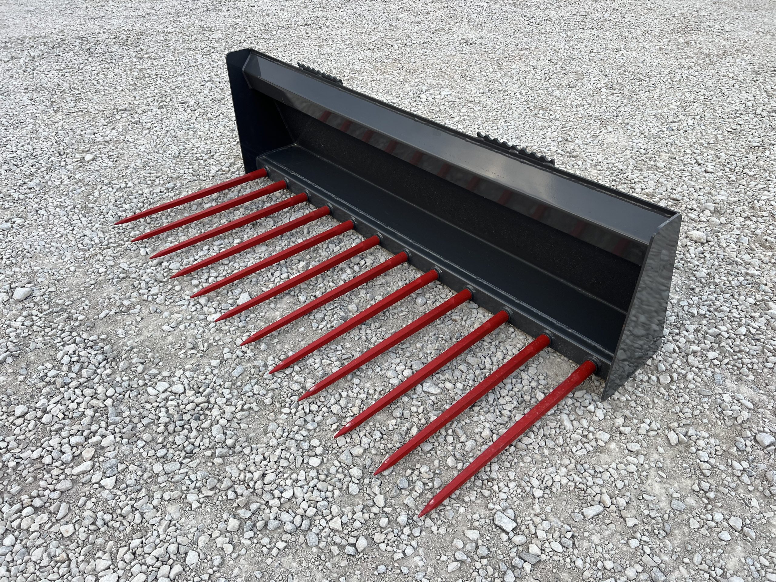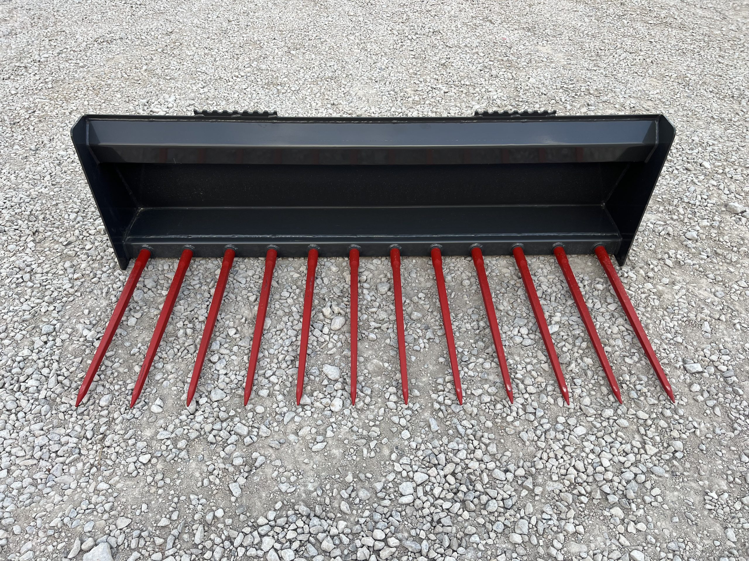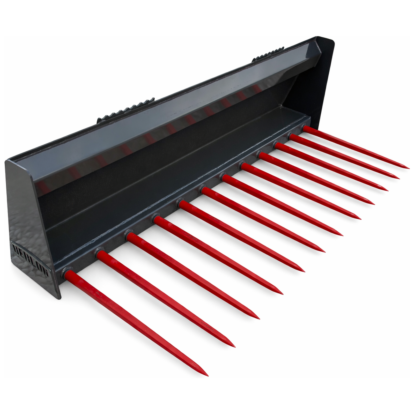 Constructed from A50 grade steel, the heavy-duty frame provides excellent strength while maintaining a manageable weight for smaller machines. The fork is equipped with twelve 32″ Conus 1 tines that are welded into reinforced sleeves, providing excellent penetration and secure handling of loose materials.