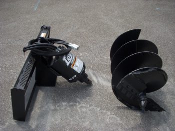Note: Package includes the Lowe BP-210 Round Auger Drive, Universal Skid Steer Mount, Hose Kit with 1/2″ Flat Face Couplers, and a 24″ Diameter x 48″ Tall Auger Bit.
