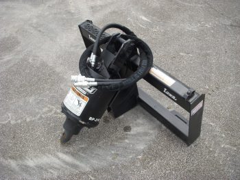 This a new Lowe BP-210 round auger drive post hole digger packaged with an 24″ wide bit. This package is designed to be run a skid steer loader with the universal skid steer mounting system. The BP-210 is a high torque/low speed drive that is rated up to a 36″ wide auger bit. The BP-210 is a hydraulic planetary auger drive with an oversized gearbox, full length housing, and a premium motor to give maximum performance and durability. This compact, in-line design and protected hose routing allow vertical holes in tight conditions. This machine is perfect for commercial or private use.