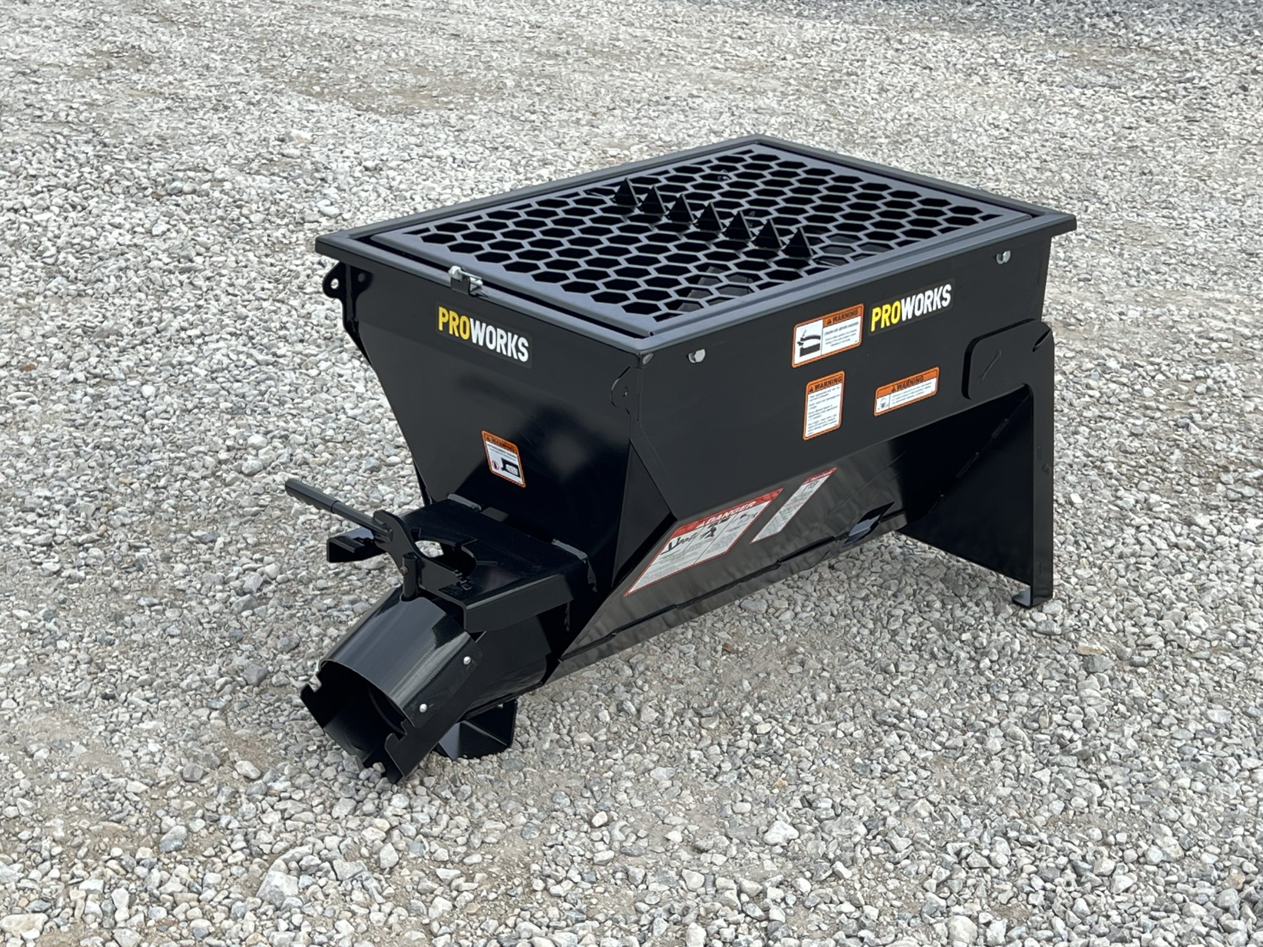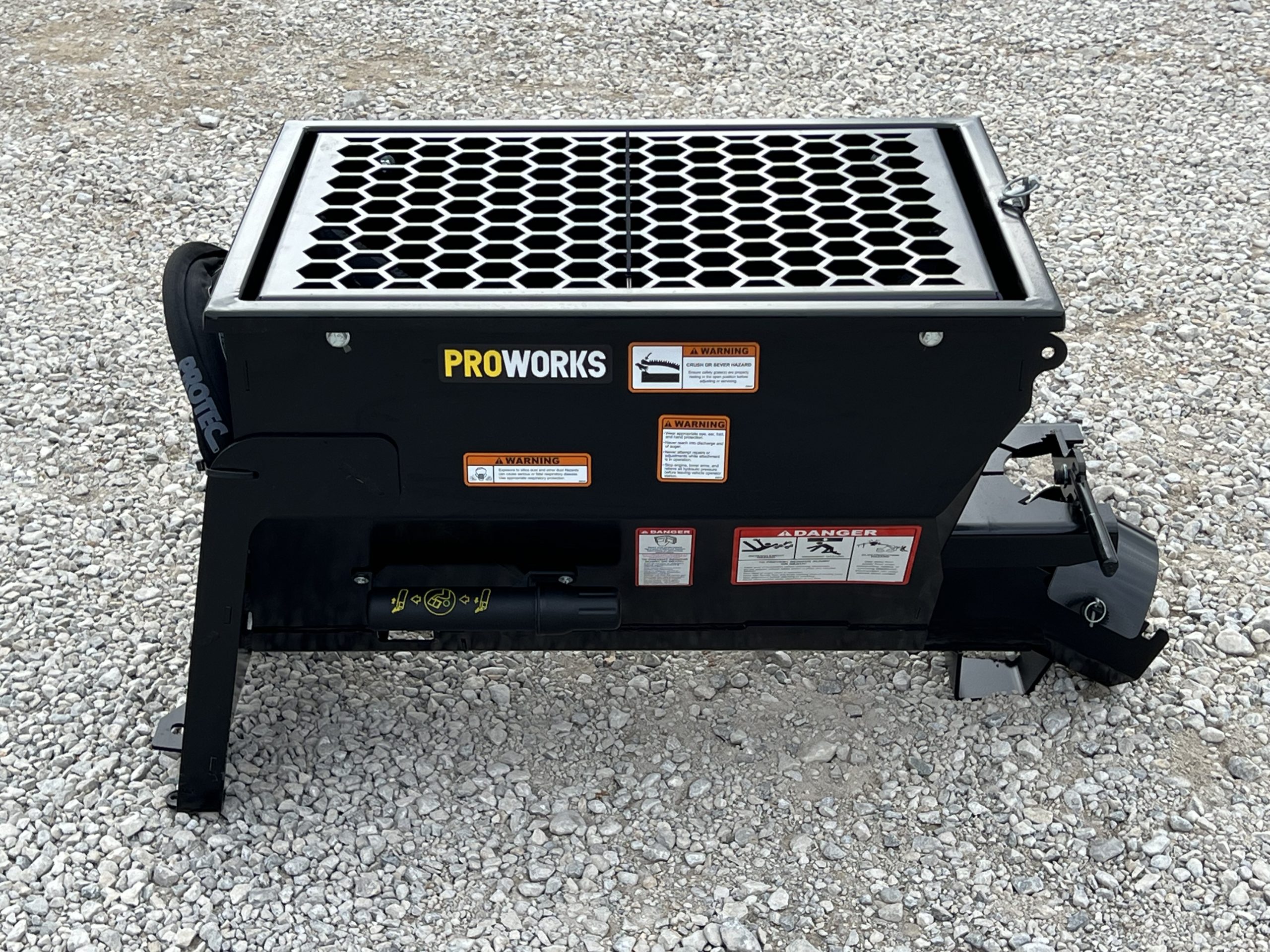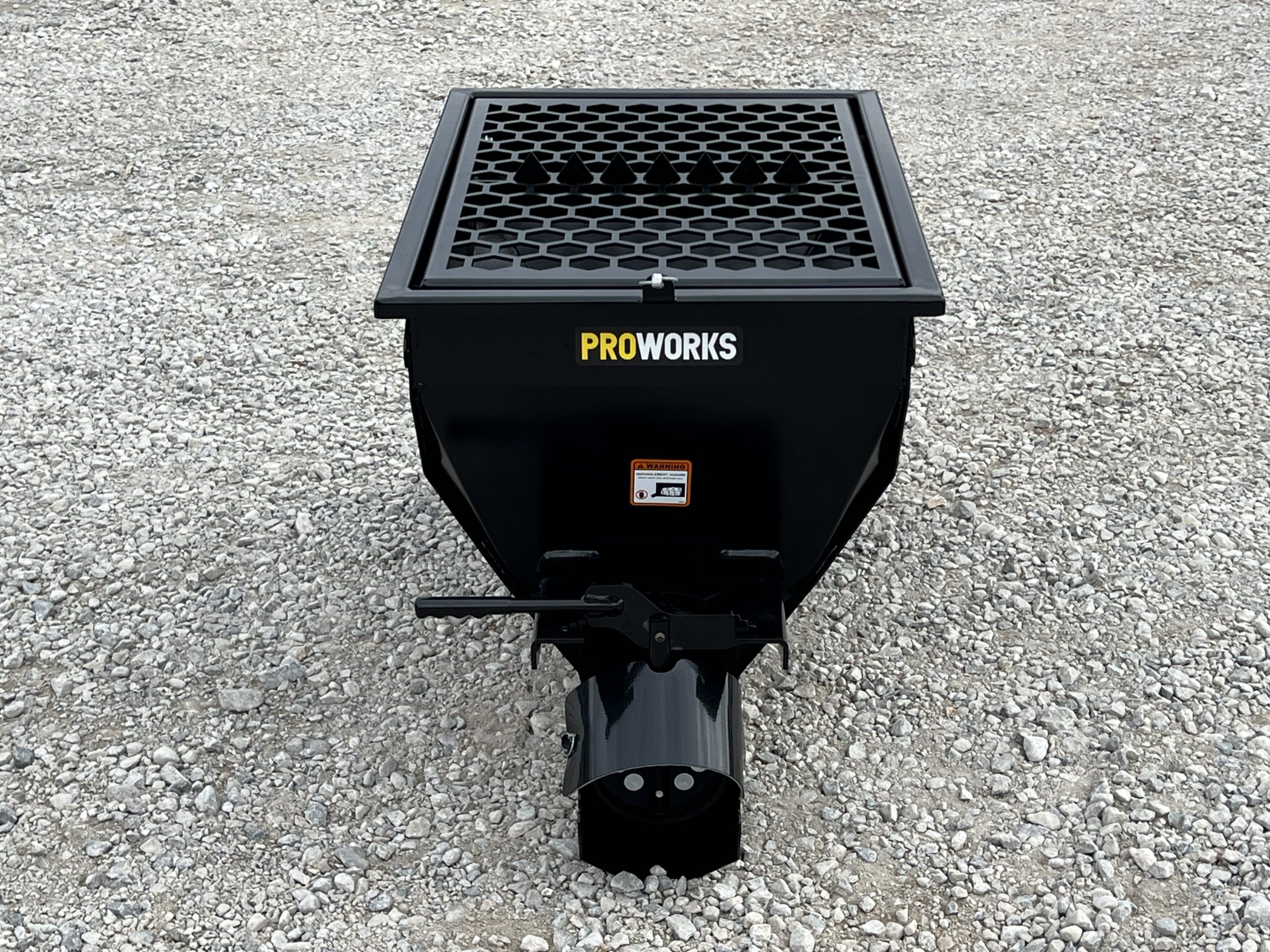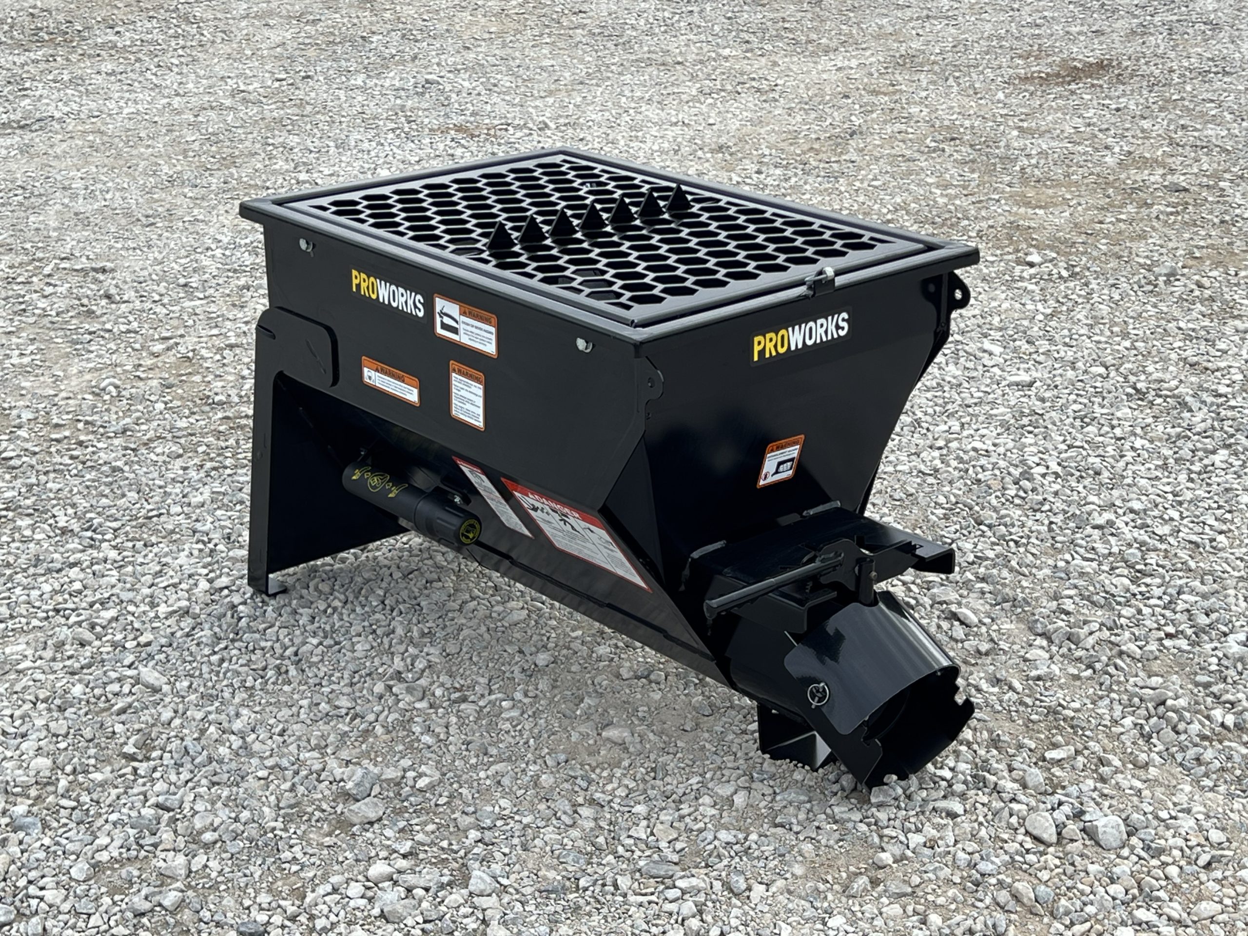 The PROWORKS Mini Concrete Dispenser handles a wide range of materials including concrete (1″ slump), sand, wildlife feed, and agricultural grains. A hybrid steel-and-rubber auger provides efficient mixing while minimizing material leakage. The rubber-sealed manual gate keeps material contained during operation, and the integrated safety grate with built-in bag busters makes loading bagged concrete fast and safe.