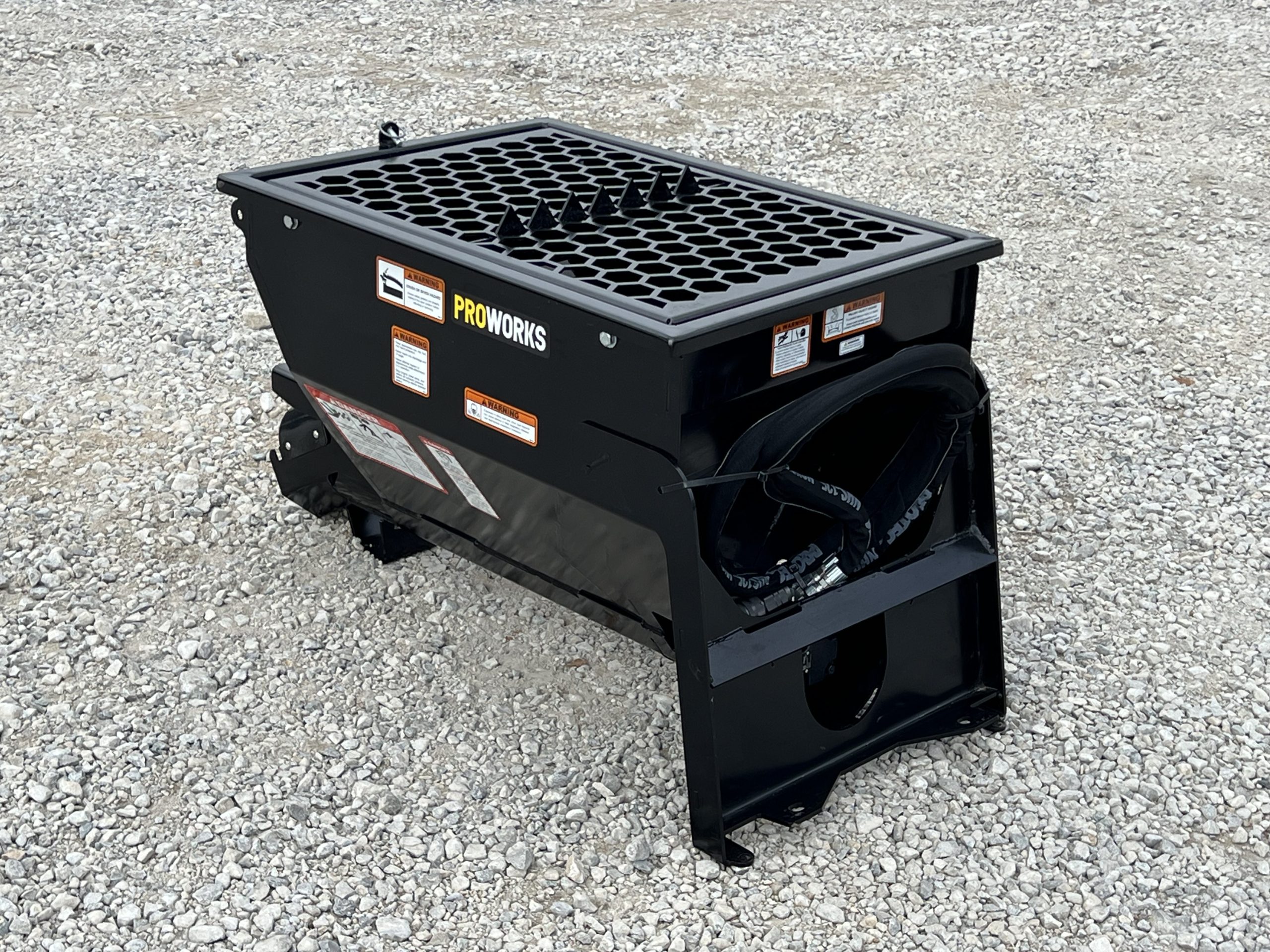 This unit comes ready to work, including one (1) 24″ multi-linked chute and two (2) hydraulic hoses with flat-face couplers.